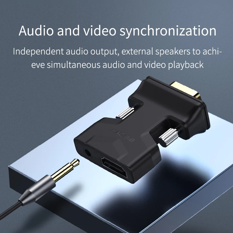 Đầu chuyển Hagibis HDMI-compatible to VGA Adapter with Audio Port Female Video Converter 3.5mm for PS4 Laptop PC TV Box Monitor Projector